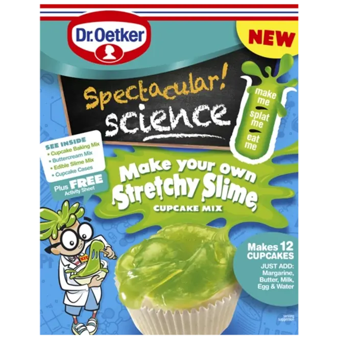 With this kit, you’ll learn the process of gelatinisation and how liquids and solids react to create gloriously gooey slime, ready to decorate your 12 yummy cupcakes with.