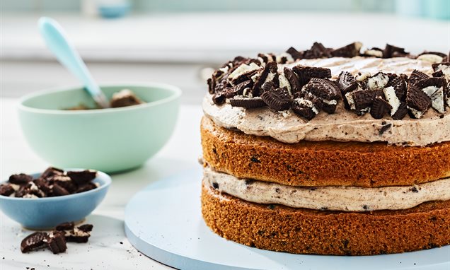 Lightly chop up the remaining oreos and pop on top of your cake.